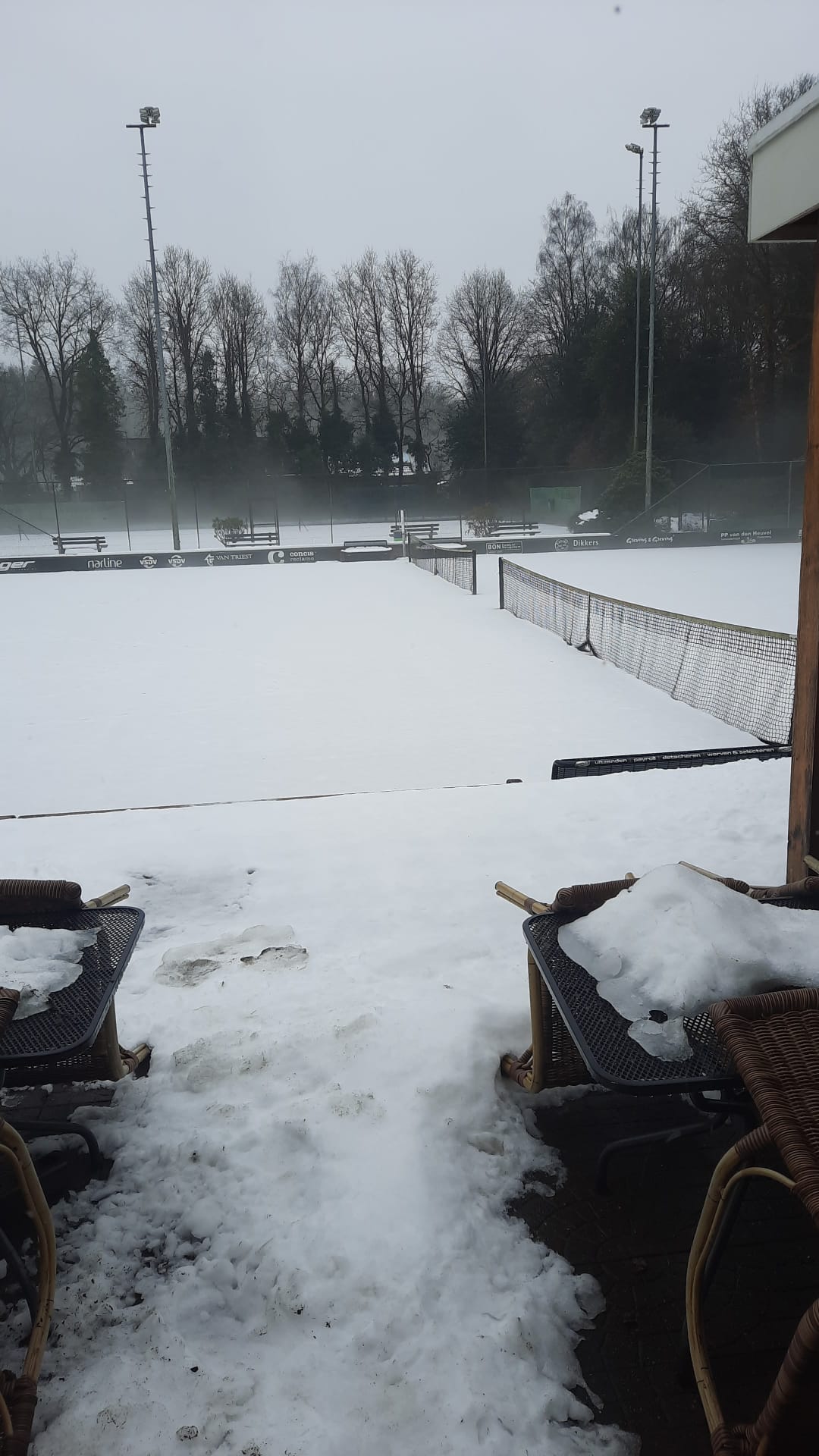 Door de sneeuw zijn de tennisbanen naar alle waarschijnlijkheid deze week nog niet beschikbaar. De sneeuw blijft voorlopig liggen. De foto is van dinsdagochtend 13 januari.